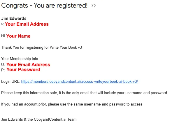 Check your email for an email titled "Congrats - You are registered!" The email will look like the one below.